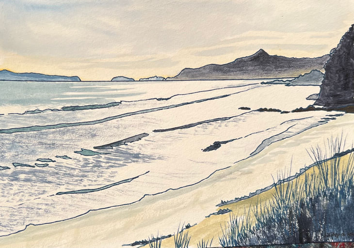 Getting "back into the paints" after years of landscape design has meant I can reflect my surroundings in acrylic paints and graphite pencil rather than mould them with structures and plants. I am often on or overlooking an ocean or sea and the water has always been a big influence on my life and works.